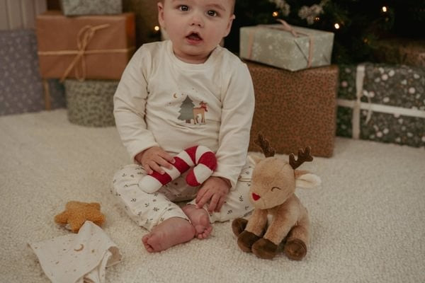 Esta caja de regalo festiva contiene tres suaves artículos ideales para abrazar y jugar. El set consiste en un doudou con una estrella, un sonajero con forma de un bastón de caramelo y un peluche blandito en forma de reno. Todo está en una caja de regalo festiva haciendo de ella una maravilloso regalo para bebés y recién nacidos.
