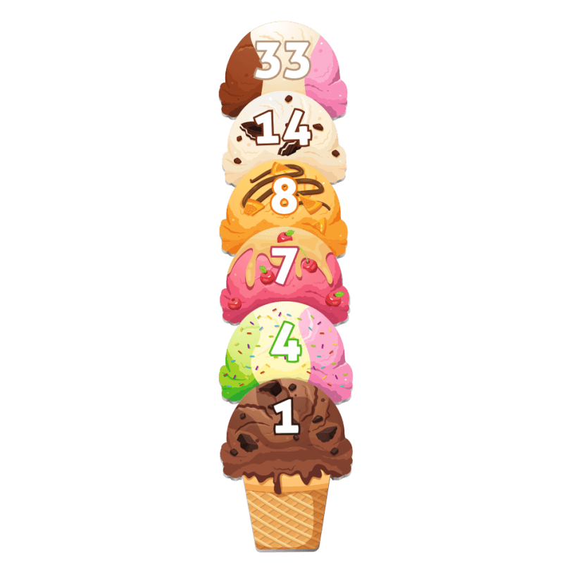 tarjetas con forma de bola de helado numeradas y