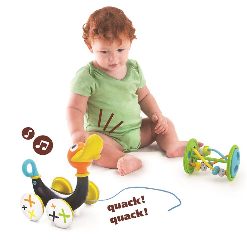 Este pato de Yookidoo camina y silba cuando se tira de él.
