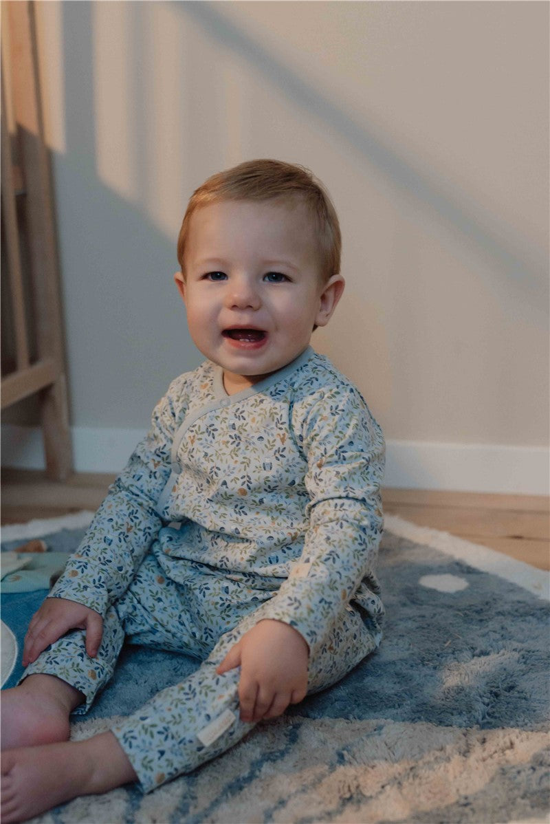 Este pijama de una pieza combina comodidad y sostenibilidad, diseñado para mantener a tu bebé abrigado y cómodo. Con un encantador estampado y confeccionado en tejido de algodón orgánico, es perfecto para acompañar a los más pequeños en sus momentos de descanso.