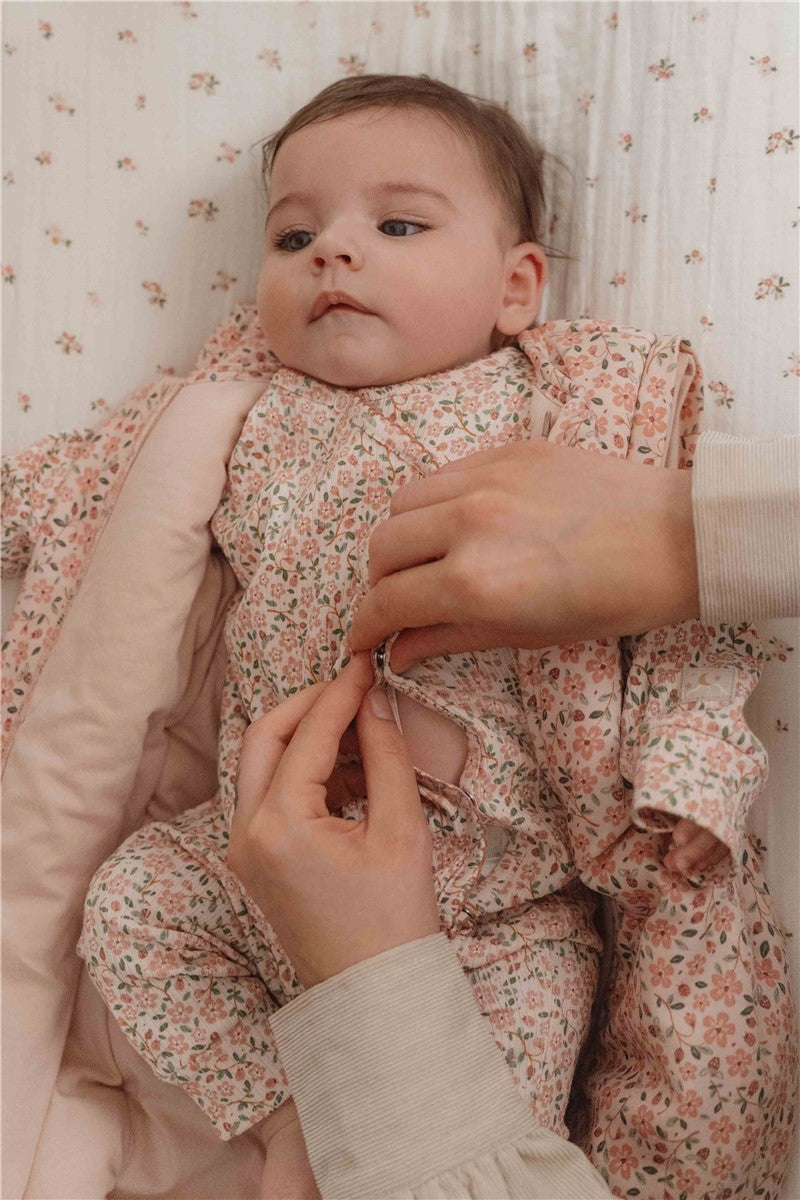 Este pijama de una pieza combina comodidad y sostenibilidad, diseñado para mantener a tu bebé abrigado y cómodo. Con un encantador estampado y confeccionado en tejido de algodón orgánico, es perfecto para acompañar a los más pequeños en sus momentos de descanso.