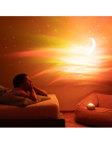 Con varias opciones de color y modos de proyección, podrás personalizarlo cada noche. Es perfecto para estimular la imaginación de los niños, ayudándoles a relajarse y a soñar con aventuras intergalácticas. Su suave iluminación también puede servir como una luz de noche reconfortante.